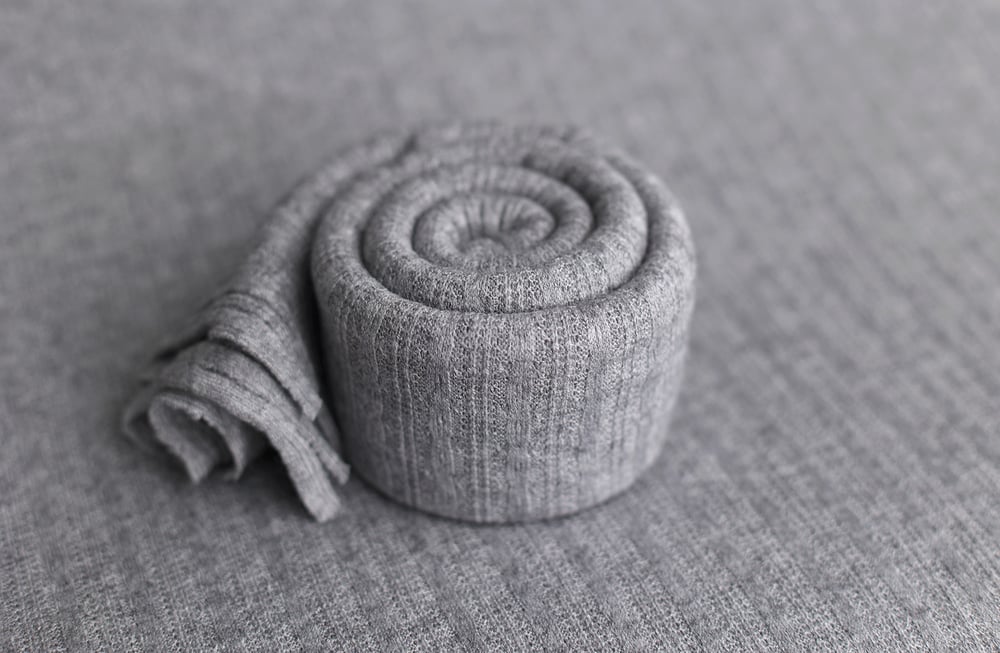 Soft textured stretch wrap in gray The edges are left unfinished for seamless wrapping. Some fraying may occur but adds to the natural rustic feel and look.