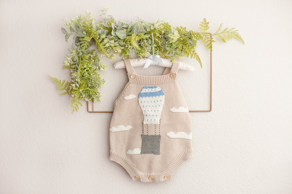 Beautiful knit romper featuring a gorgeous hot air balloon applique.