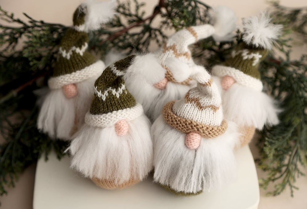 Sweet little gnome prop for newborn sessions. Made from soft alpaca blend yarn, measures about 4-5" depending on the style
