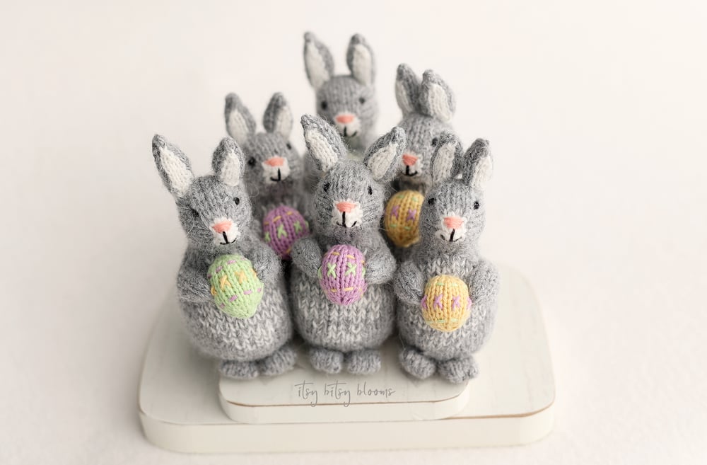 Sweet little Eater bunny prop for newborn session. Made with angora yarn, measures about 4"