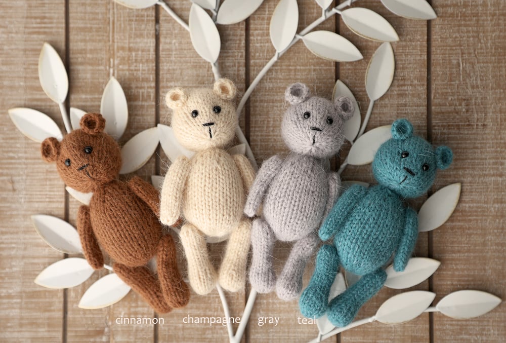 Sweet little teddy bear prop for newborn sessions. Made from soft angora yarn, measures about 5.5"