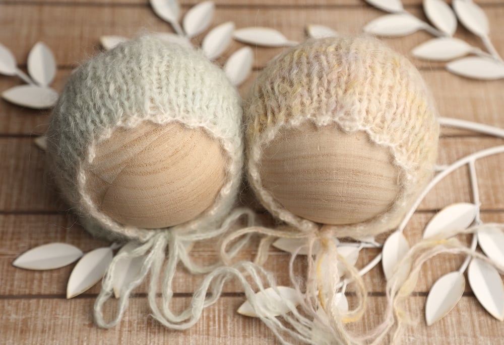 Super soft and fluffy newborn bonnet, lovingly hand knit from hand dyed brushed alpaca yarn.