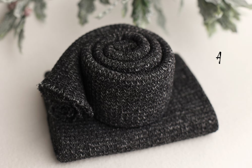 Super soft textured stretch wraps in charcoal/black/navy shades. Each piece measures about 15x60.
